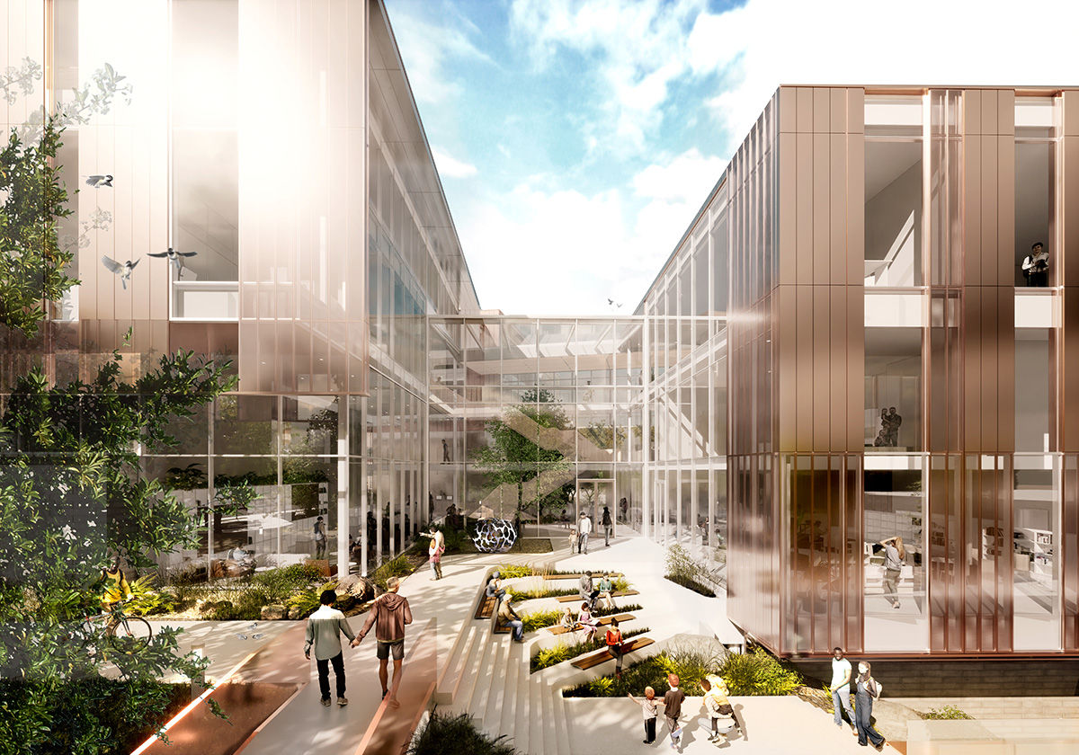 À l’intérieur, un atrium biophilique relie les six niveaux du bâtiment et invite la nature au cœur du projet. Ce carrefour lumineux favorise la déambulation, les rencontres et accueille des jardins intérieurs. La salle de spectacle, avec son écrin miroitant, s’ouvre sur la rive urbaine et devient un repère emblématique. Des toitures végétalisées enrichissent l’expérience avec des jardins ludiques, artistiques et communautaires. Espace Rivière se veut un lieu polyvalent et vivant, où architecture, paysage et culture s’entrelacent pour offrir aux résidents un écrin d’eau et de verdure en plein cœur de la ville — un projet durable, inclusif et inspiré par la nature.